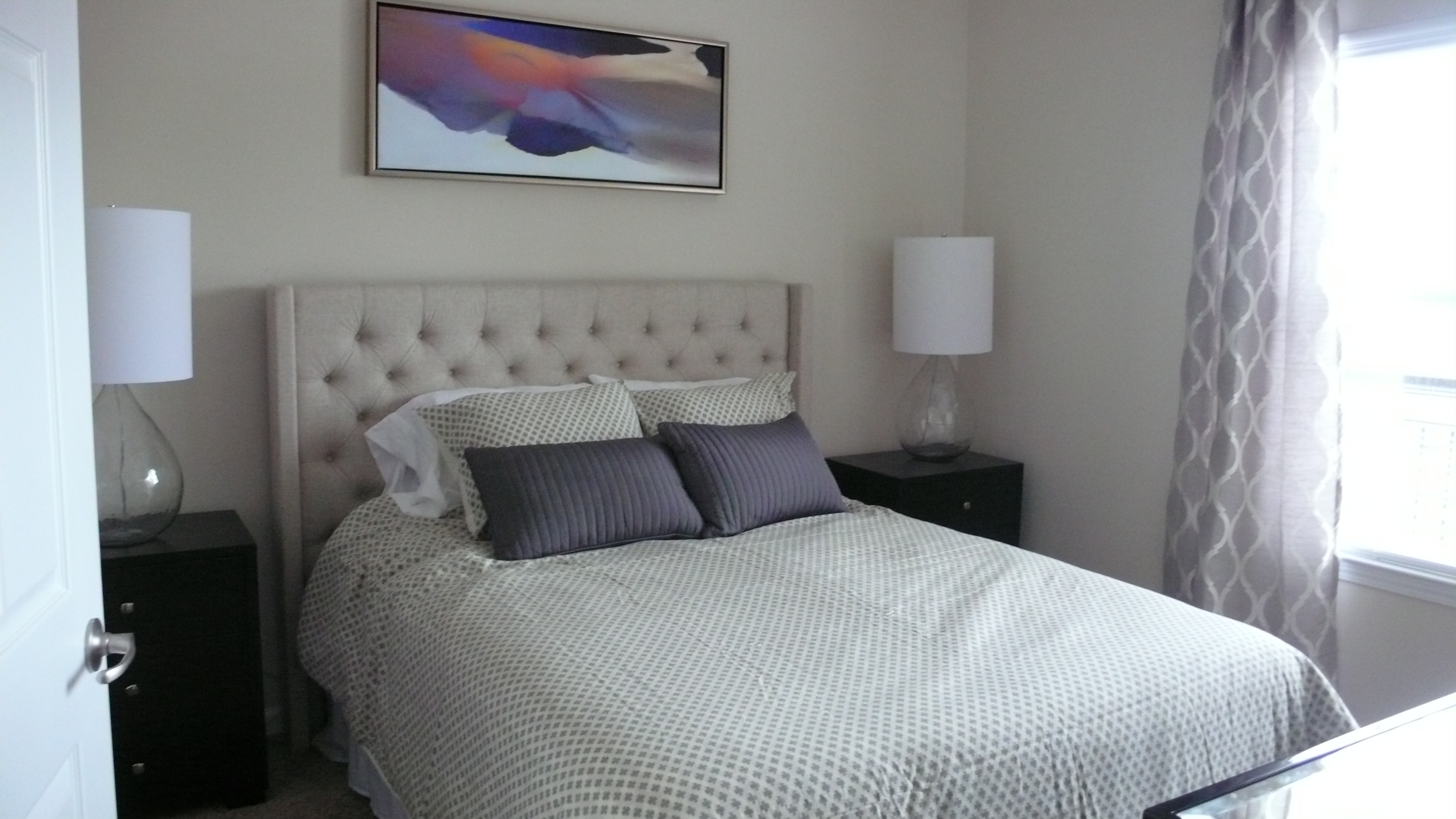 The two bedroom apartment was updated at a $11,500 budget, including new artwork, to give the unit a more urban feel for the young professional demographic.
