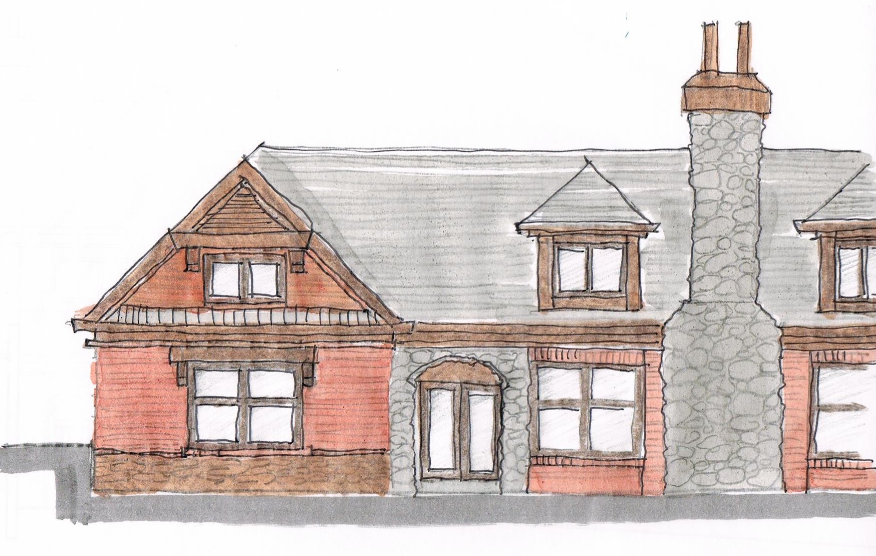 This Client preferred a traditional look versus a modern version, and we provided concepts with partial colored sketches.
